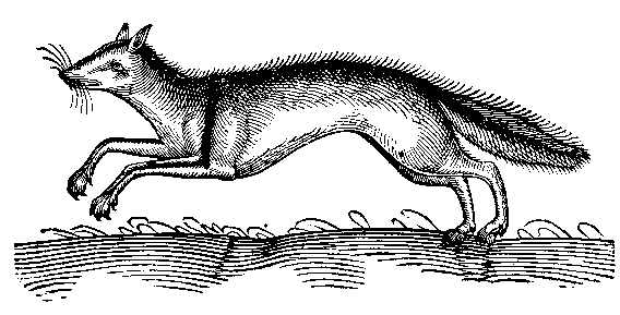 Topsel refers to his Animals as 'he' or 'she'; rarely as 'it', and at times his drawings are quite anthropomorphic - like this wonderfully cheeky Polecat. Sometimes this happens because the creatures he is working with are fantastic, and he has no model to work from, but what excuse does he have for this guy? Medieval artists drew 'funny animals', whether they meant to or not, and since drawing skills had increased dramatically by the 16th century, Topsel's book is filled with some very well-drawn near-toons.